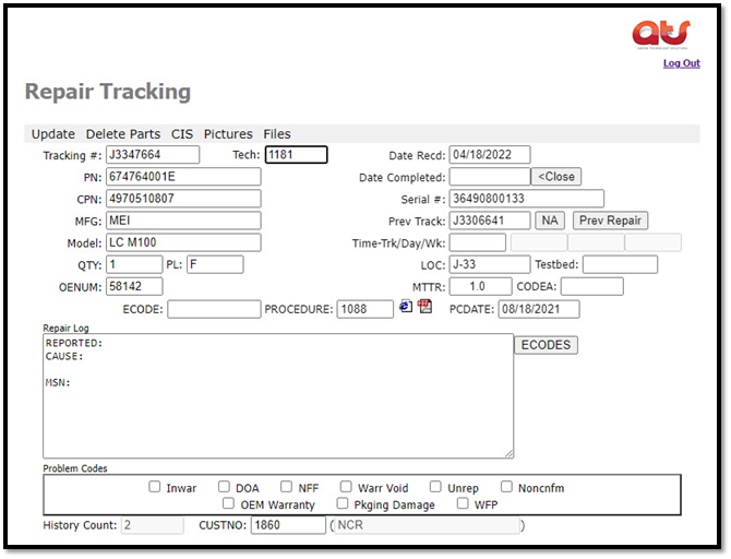 NOTE: The quality inspector must ensure that Tracking # of the unit is closed in the AMCOR log before testing.