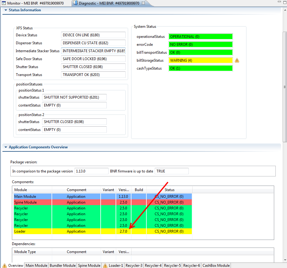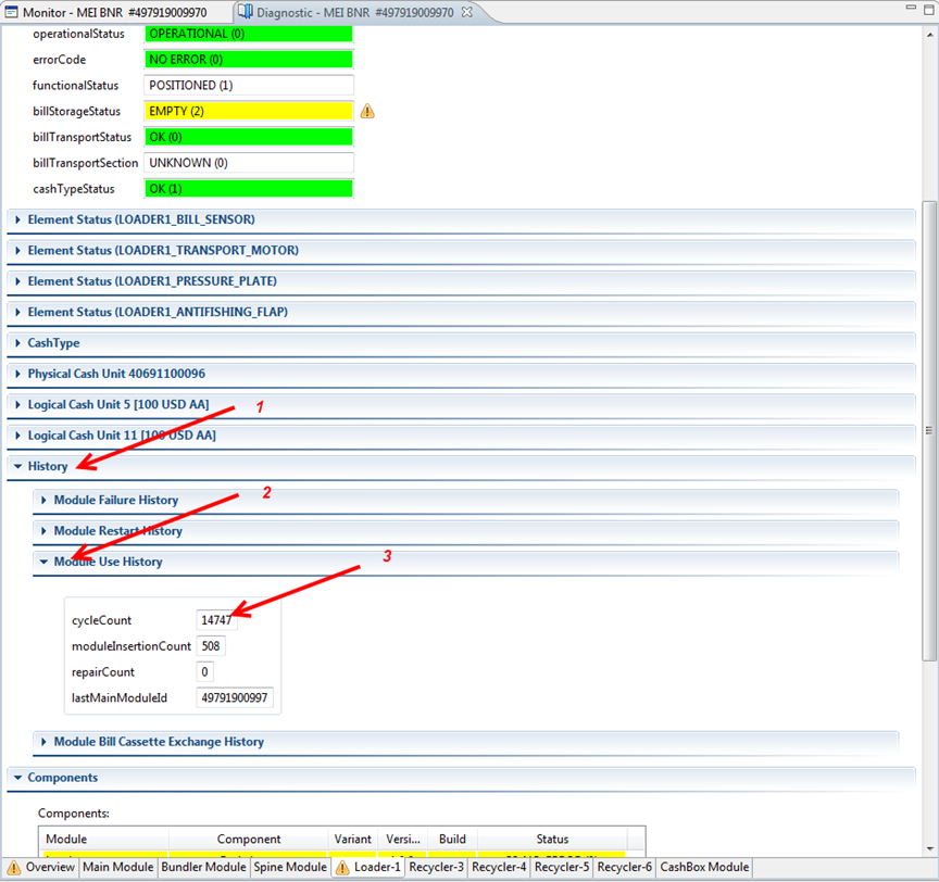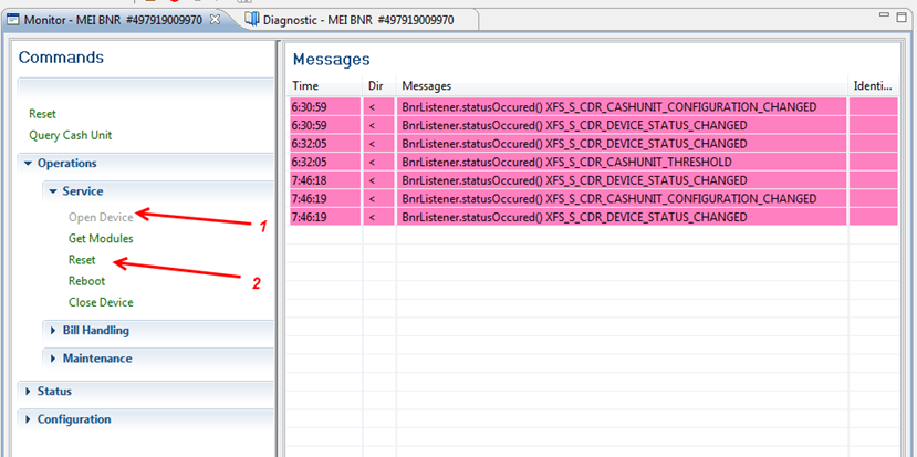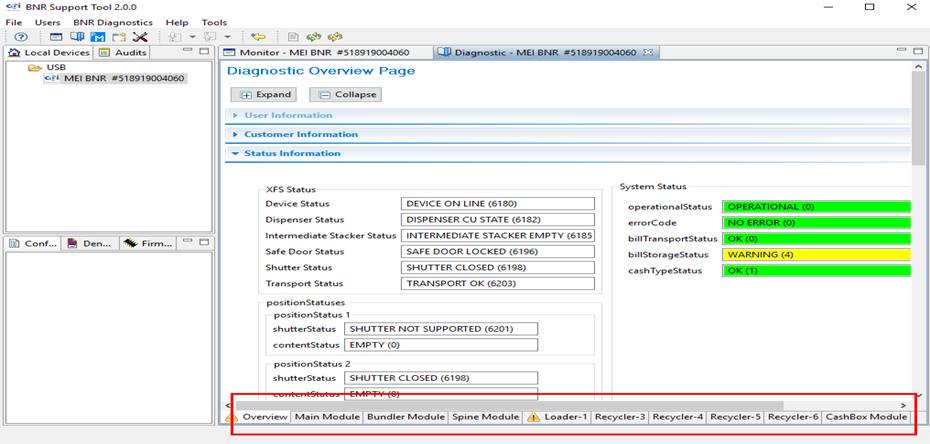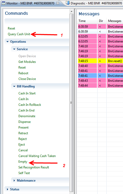 Seleccione MEI BNR #XXXXXXXXXXX (información de la unidad).