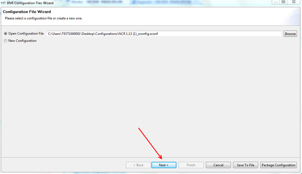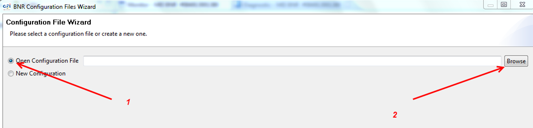 The program will open, from which you will select the option File (1) then select Configuration Files Wizard (2)