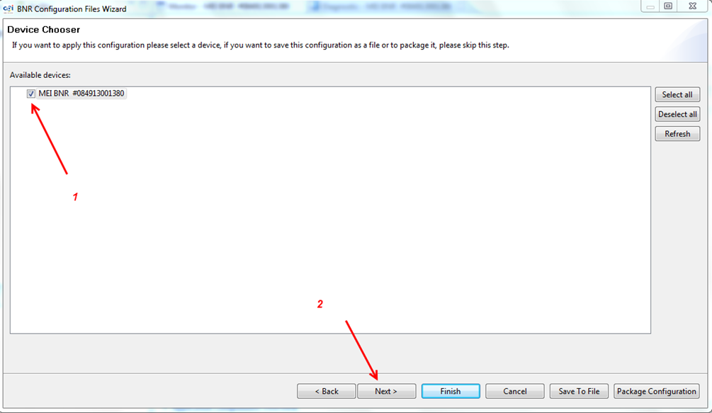 Select MEI BNR #XXXXXXXXXXX (unit information).