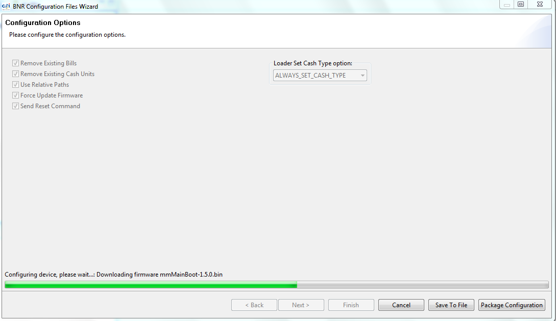 The unit restarts and starts loading the money. Distributes the banknotes to the recyclers and to the cash-box.