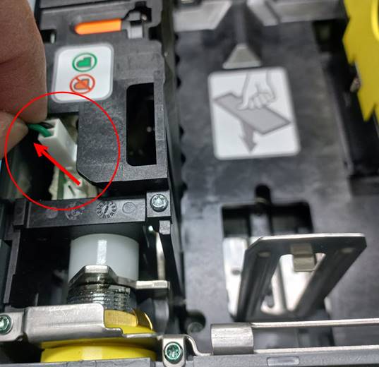 Cierre la tapa del cargador de billetes y cierre la llave. Instale el cargador (Loader) en la cama de prueba, baje la bandera amarilla y cerrar la llave del Interlock: