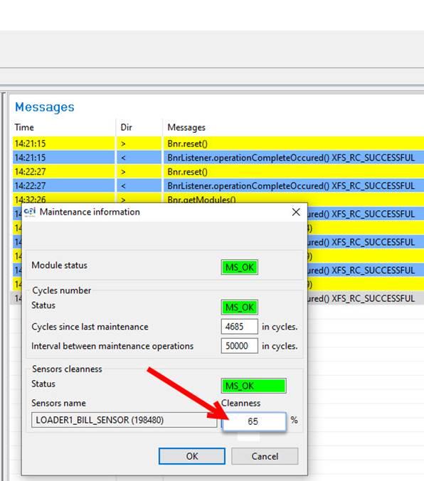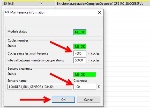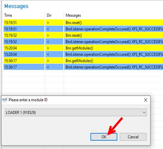 At this point, all banknotes must be sent to the cash-box and the Loader's LED indicators must be red.