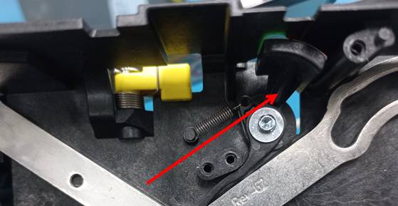 Acomode el engranaje blanco en su posición correcta, la muesca deberá coincidir con el engranaje negro, como se muestra en la imagen: