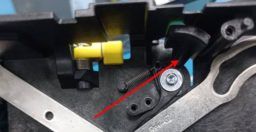 Adjust the white gear in its correct position, the notch should match the black gear, as shown in the image: