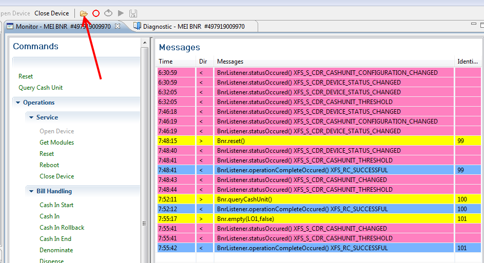 On your PC locate and open the folders: Documents, MEI, bnr data, Audit until you find the Folder loader diagnostic