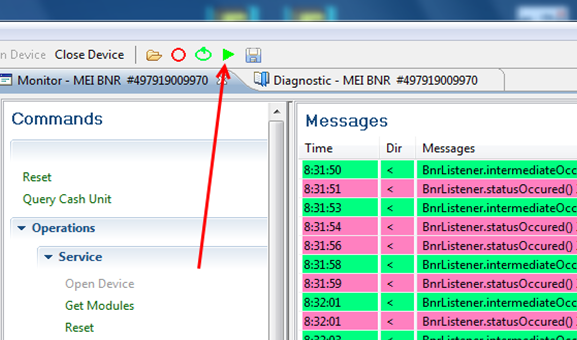 The led indicator should be lit in green; this indicates that the Loader is still loaded with bills.