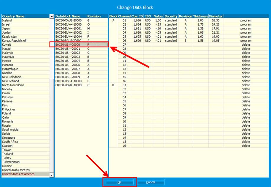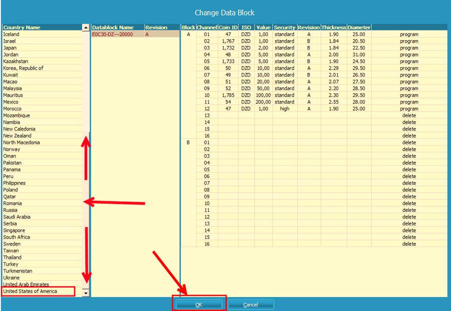 Now you must make absolutely sure that the accepted coins go to the correct Hopper according to each of their denominations.